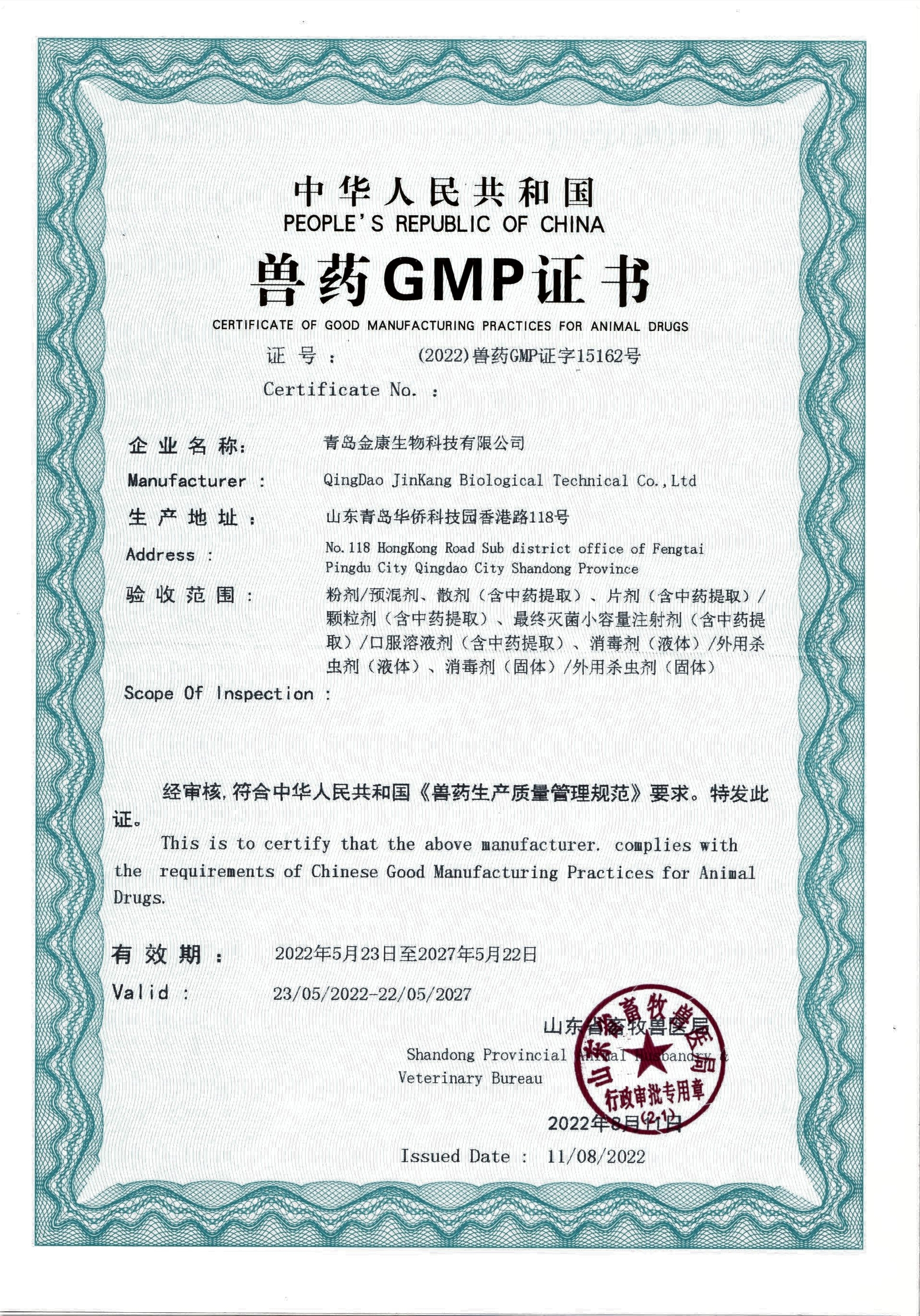 青島金康生物科技有限公司是金康集團(tuán)旗下一家高起點(diǎn)專業(yè)從事動(dòng)物藥品科研、生產(chǎn)、銷售、服務(wù)于一體的國(guó)家農(nóng)業(yè)部GMP認(rèn)證企業(yè),金康集團(tuán)旗下現(xiàn)擁有青島金康生物科技有限公司、青島金康動(dòng)物科技研究院、青島金康利水生物科技有限公司、青島金康惠眾生態(tài)養(yǎng)殖有限公司四家子公司,業(yè)務(wù)范圍幾乎遍布養(yǎng)殖業(yè)各個(gè)領(lǐng)域。